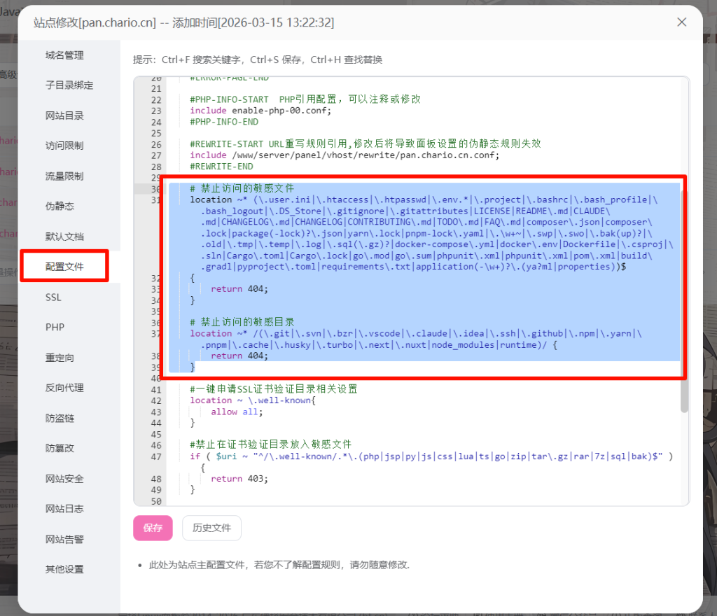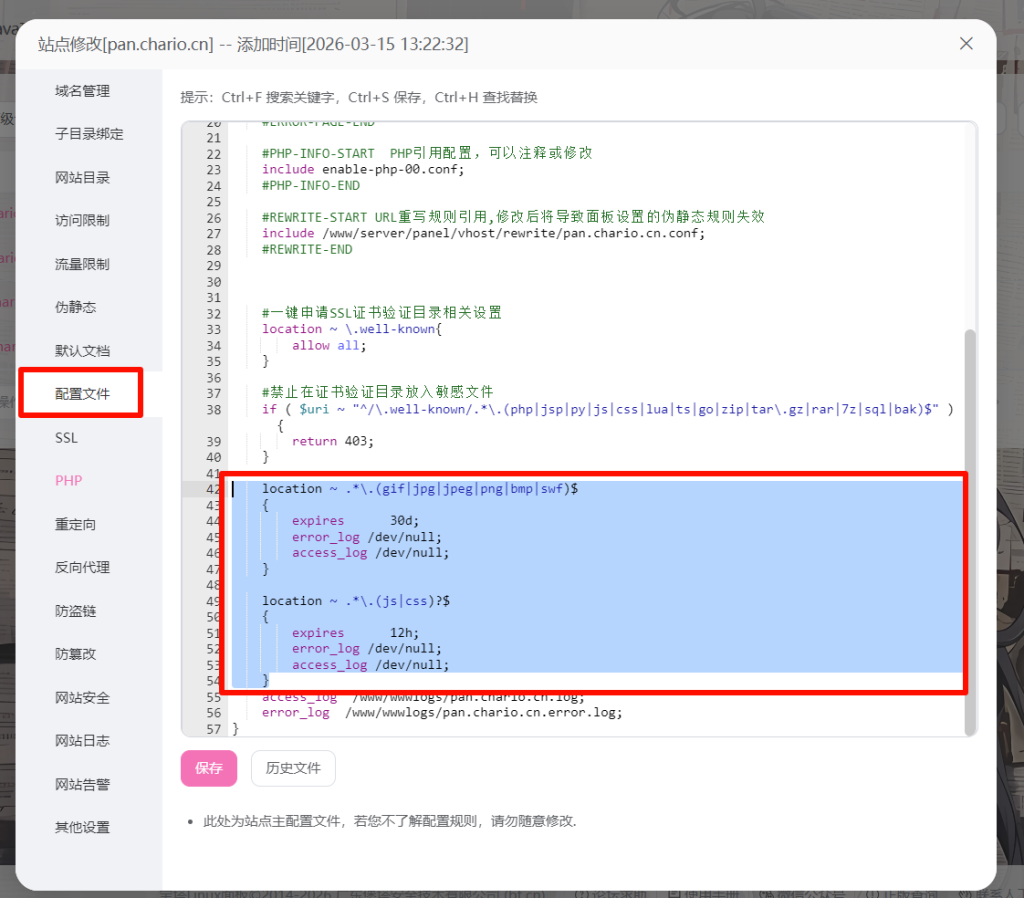以宝塔为例,有两种方式让新配置生效。